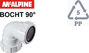 Omschrijving: McALPINE BOCHT 90ø ø40F x ø40F PP 0059250