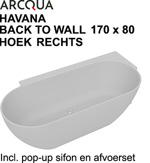 Info: ARCQUA HAVANA BACK TO WALL 170 x 80 HOEK RECHTS Incl. pop—uo sifon en afvoerset