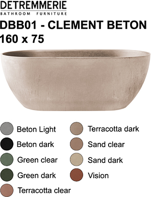 Omschrijving: DETREMMERIE BAD CLEMENT 160x75x57CM BETON BCCBSC