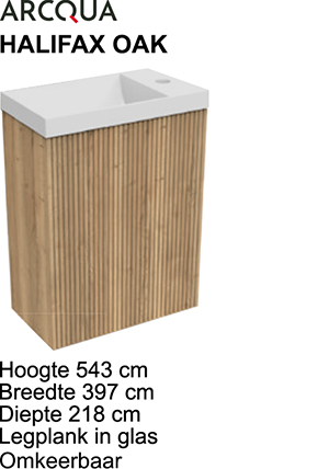 Omschrijving: ARCQUA HANDWASSER 40x22 HALIFAX OAK MAT WIT