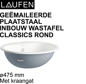 Info: LAUFEN GEËMAILEERDE PLAATSTAAL INBOUW WASTAFEL CLASSICS ROND 0475 mm Met kraangat