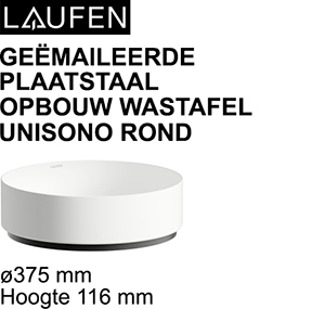 Info: LAUFEN GEËMAILEERDE PLAATSTAAL OPBOUW WASTAFEL UNISONO ROND w 0375 mm Hoogte 116 mm