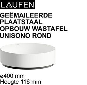 Info: LAUFEN GEËMAILEERDE PLAATSTAAL OPBOUW WASTAFEL UNISONO ROND ssi 0400 mm Hoogte 116 mm