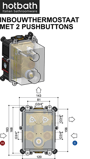 Omschrijving: HB INB.DEEL THERM. MET 2-WEG PUSHBUTTON HBPB009