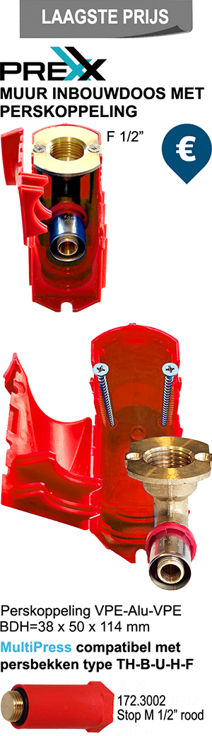 Alupex perskoppeling , Bocht PreXX, Coude PreXX, Culas PreXX , Elleboog PreXX, Fittings PreXX, Inbouwdoos Prexx , doos, Manchon PreXX, Muurinbouwdoos PreXX VPE/Alu , doos, Muurplaat PreXX , culas, Nippel PreXX, Persfitt. Alupex, Persfitt. PreXX , Perskopp. Alupex, Perskopp. PreXX VPE/Alu/VPE , prexx, PreXX buis isol VPE/Alu/VPE , buis , PreXX inbouwdoos VPE/Alu/VPE , doos, PreXX leidingen isol VPE/Alu/VPE , buis , PreXX persfittings VPE/Alu/VPE , prexx, Reductie PreXX, PreXX muurinbouwdoos , muur, Slangnippel druk PVC, Sok PreXX, T PreXX, Te PreXX, Tubipex koppelingen, Verloop PreXX, VPE/Alu/VPE muurinbouwdoos , muur, VPE/Alu/VPE persfittings PreXX , prexx,