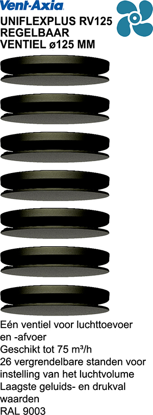 Omschrijving: UNIFLEXPLUS REGELB. VENT RV ø125 /7ST ZWART ..252